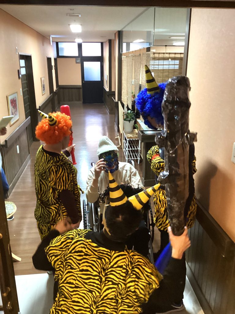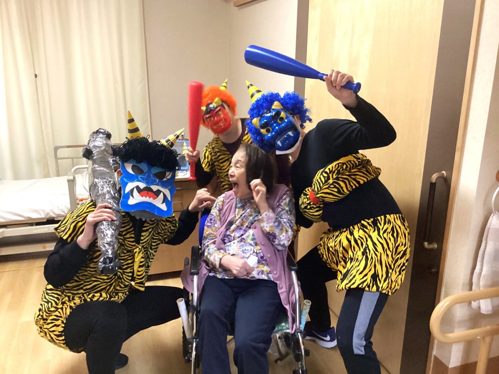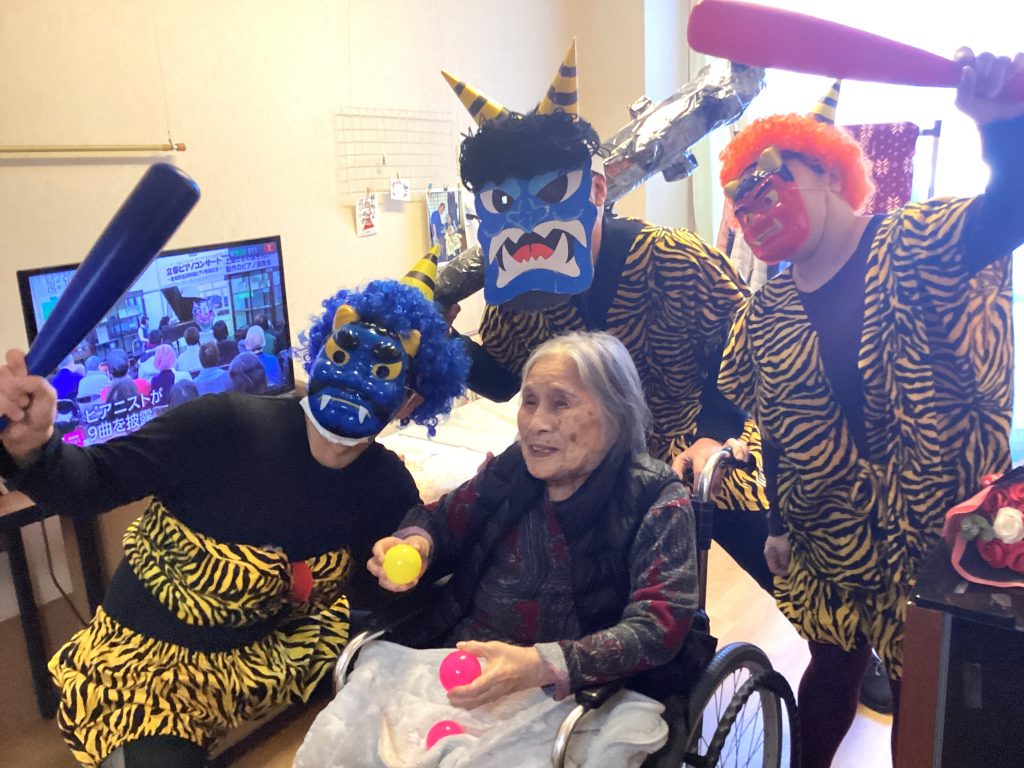 ~節分~ 2026年2月11日 お知らせ 絆の広場 一人ひとりのお部屋を訪ねる鬼達👹 鬼の訪問✨とっても喜んでくれました~🤣 鬼のお面をつけて出迎えてくれた入居者さんヾ(*´∀`*)ノまさかのサプライズに鬼もびっくり💦 こちらのユニットも大盛り上がり°˖☆◝(⁰▿⁰)◜☆˖° また来年👋 美味しい恵方巻も頂き、 楽しい節分行事となりました👹節分に食べる豆は「福豆」と呼ばれるそうです🎵福が舞い込んできますように💕