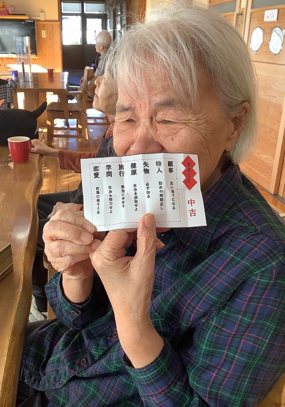 新年を迎え、ご家族様に参加頂きお食事会を開きました。豪華な料理に会話が弾み、獅子舞踊りやおみくじなどお正月らしいレクリエーションを楽しまれました。