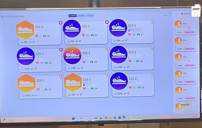 眠りスキャンを導入しました。利用者の睡眠状態や心拍、呼吸等の体調管理の見える化によりQOLの向上や安全管理に役立てていきます。